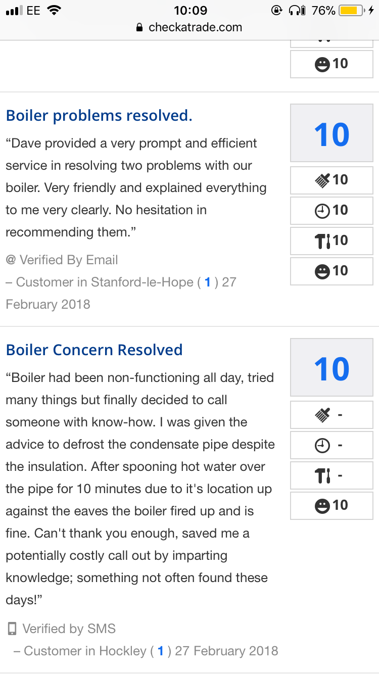 In conversation she told me that she used another company last year to service her boiler and on the strength of being happy with the boiler service she recommended them to her mum to replace her boiler. The outcome was that her mum has now had a very poor quality boiler poorly fitted by this company. There have been multiple issues which the company has not dealt with. I know of the company, as I now have another customer who also had a boiler very poorly fitted by them. I am not prepared to name the company as the owners of rogue companies tend to be very nasty people.